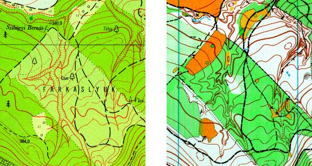 Egyéb tekintetben is elmondható, hogy az erdős területek minden szempontból (síkrajz és növényzet is) elnagyoltabbak, mint a lakott, a mezőgazdasági és az ipari területek. Ez teljesen természetes, mivel ezek a térképek ezeknek a területeknek a bemutatására készülnek.